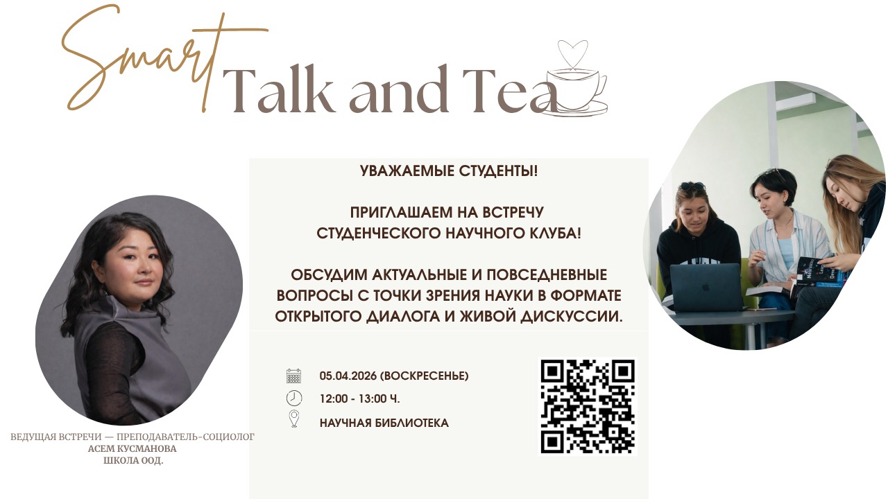 We invite everyone interested to take part in the meeting of the Smart Talk & Tea scientific club, which will take place on April 5, 2026, at 12:00.