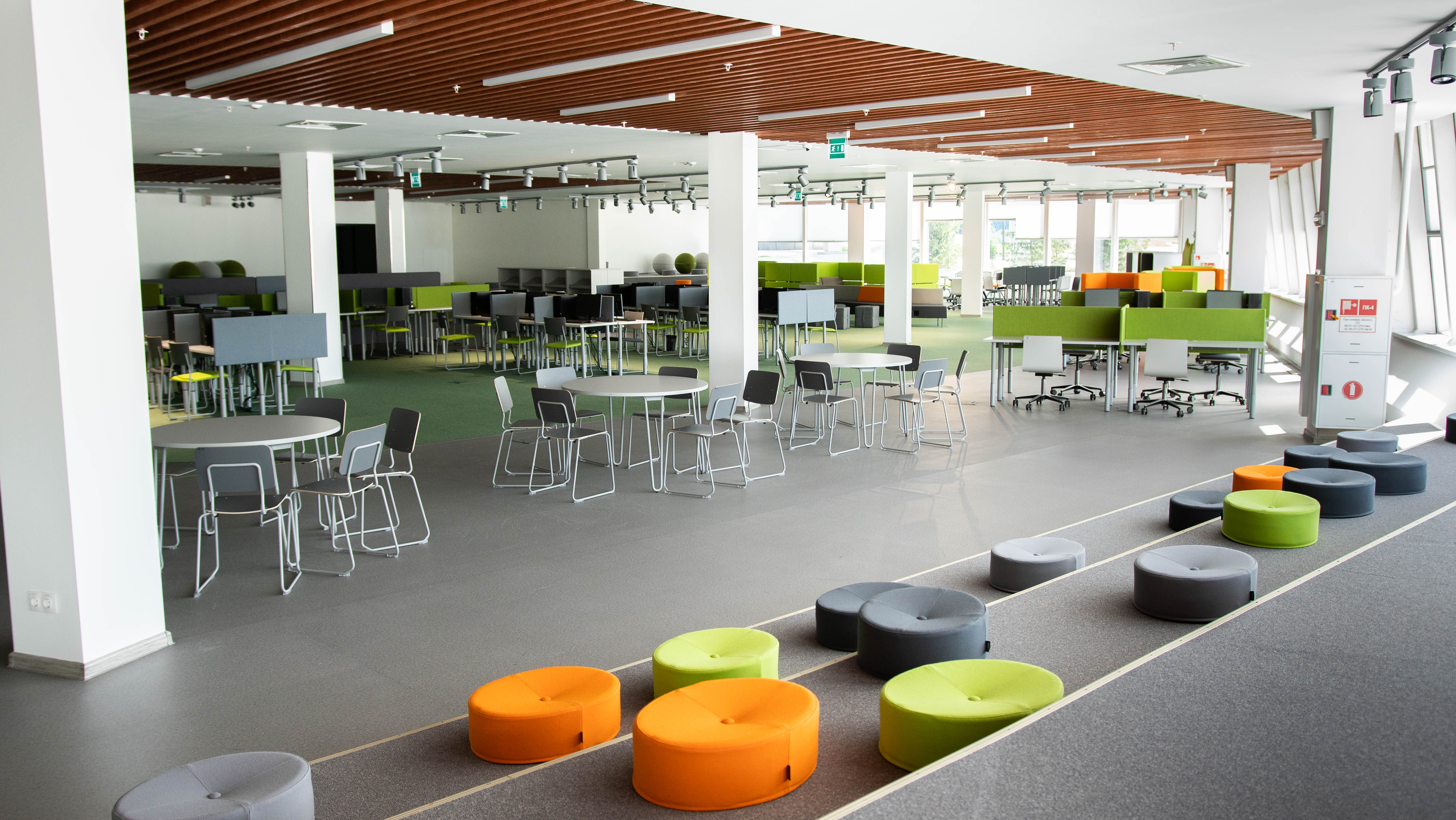 В библиотеке имеется обширная коллекция для обучения, исследований и чтения в свободное время. Большинство книг расположены в залах на открытых полках, где студенты, преподаватели и сотрудники могут легко получить доступ к литературе.